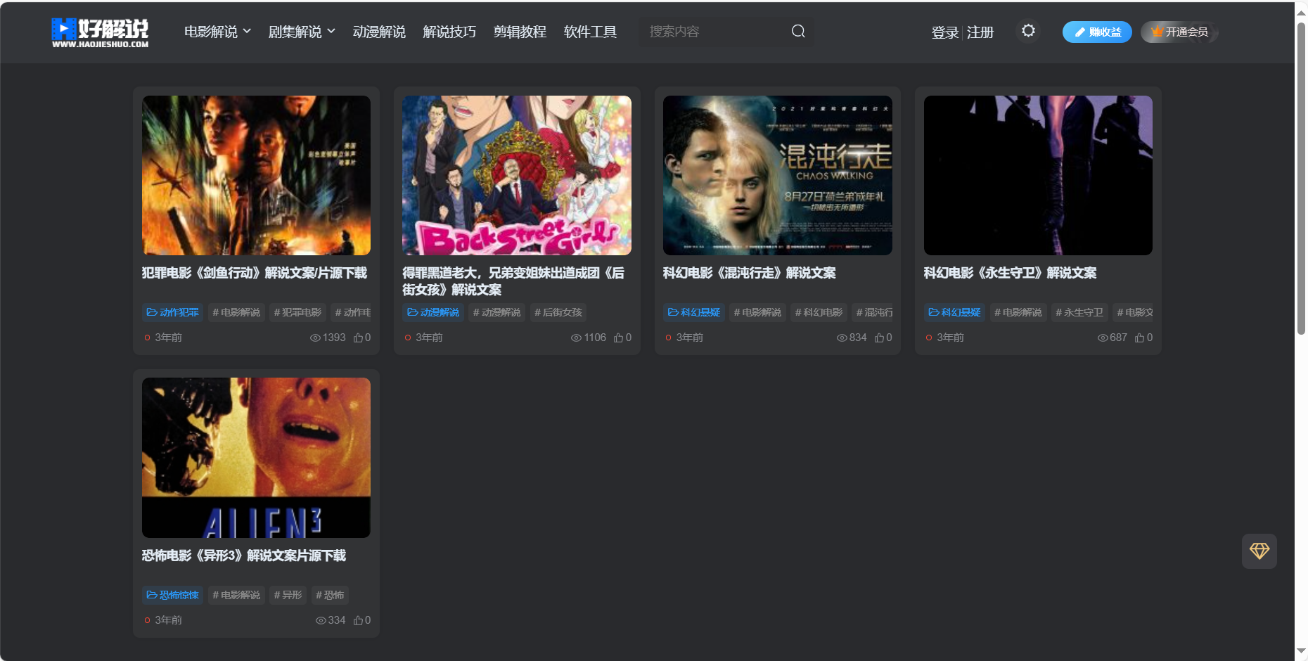 好解说网是一个提供电影电视剧解说文案与抖音电影资源剪辑素材的平台。它专注于为内容创作者提供解说文案和视频剪辑素材,帮助他们制作电影和电视剧解说视频。