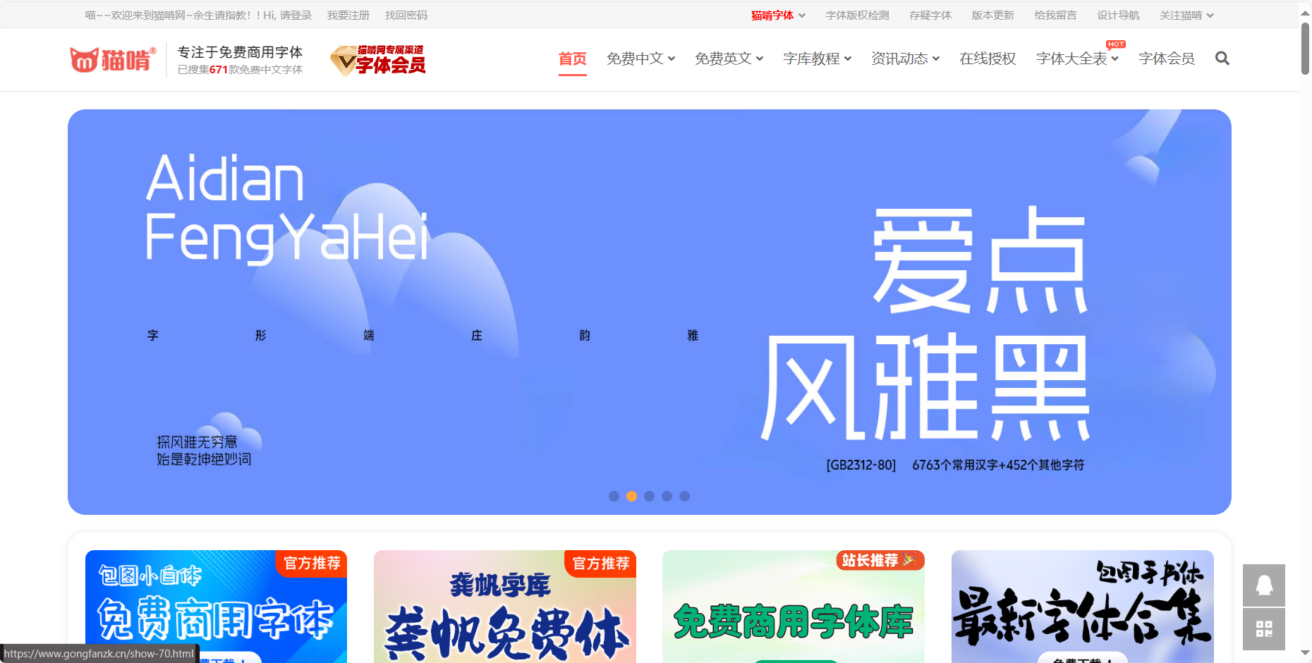 - 浏览字体:访问猫啃网,浏览提供的免费商用字体和其他字体资源。