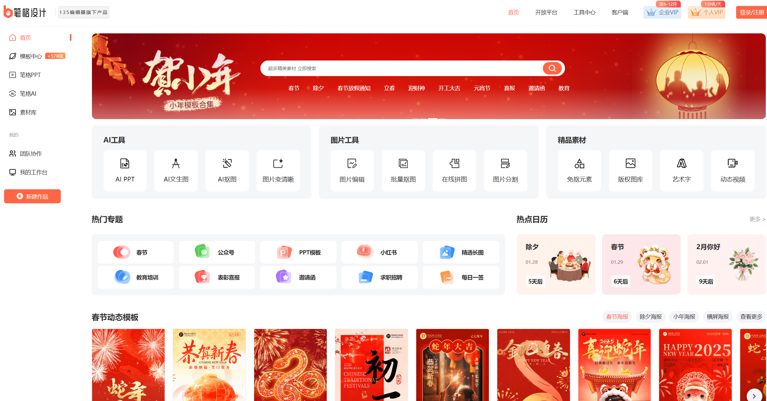 笔格设计是一个一站式、多场景、智能化的在线图片编辑平台,由成都刻尚科技有限公司开发,依托于135编辑器。该平台旨在打破工具和技术的限制,根据不同场景、尺寸和风格产出优质设计图,无需Photoshop基础,用户可以轻松上手设计出优质作品。