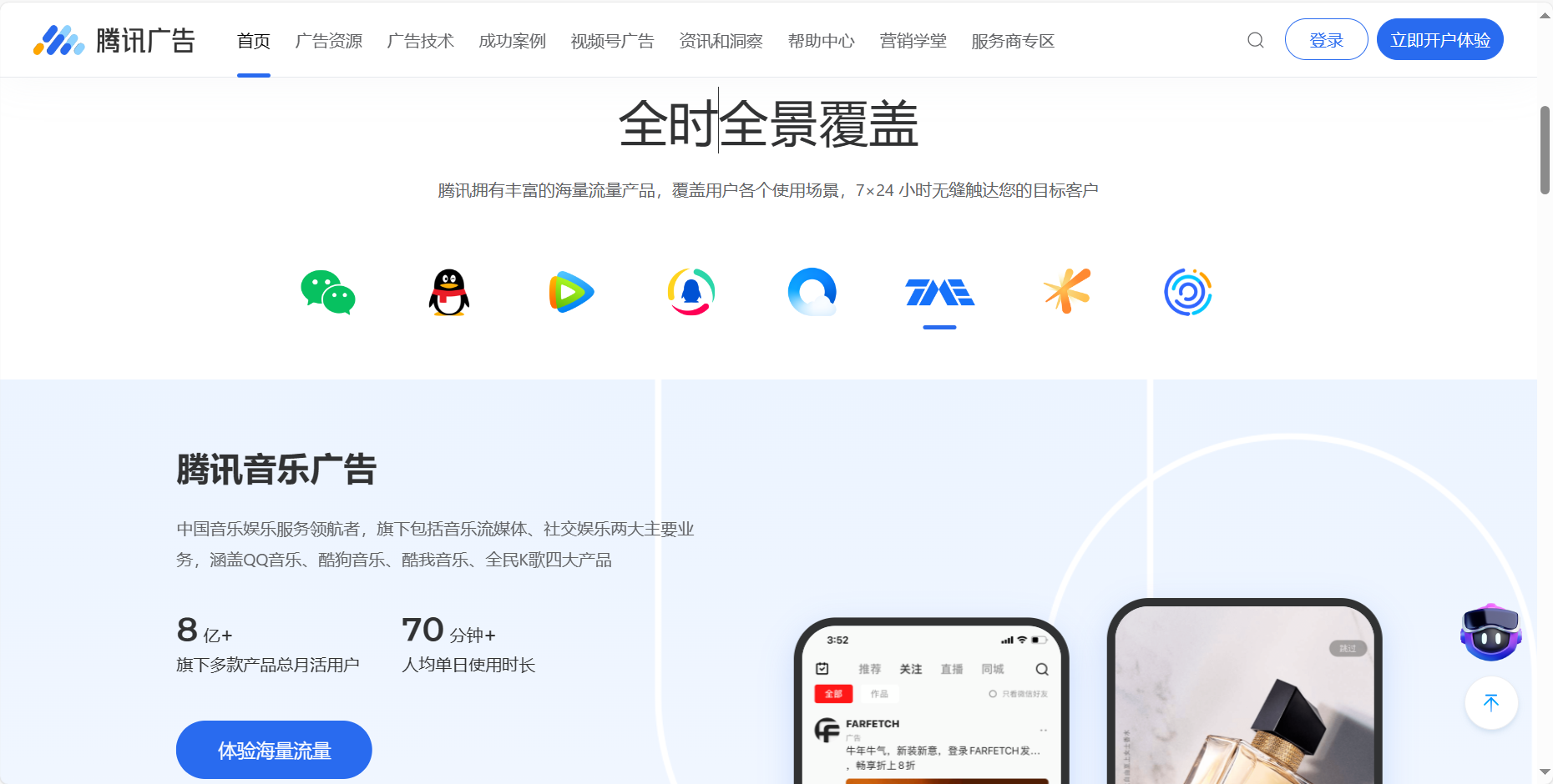 腾讯广告是腾讯公司提供的一站式广告投放平台,旨在助力企业实现各种营销目标。该平台拥有全时全景的覆盖能力,通过整合腾讯旗下的海量流量产品,如微信广告、QQ广告、腾讯视频广告等,覆盖用户的各种使用场景,实现7×24小时无缝触达目标客户。