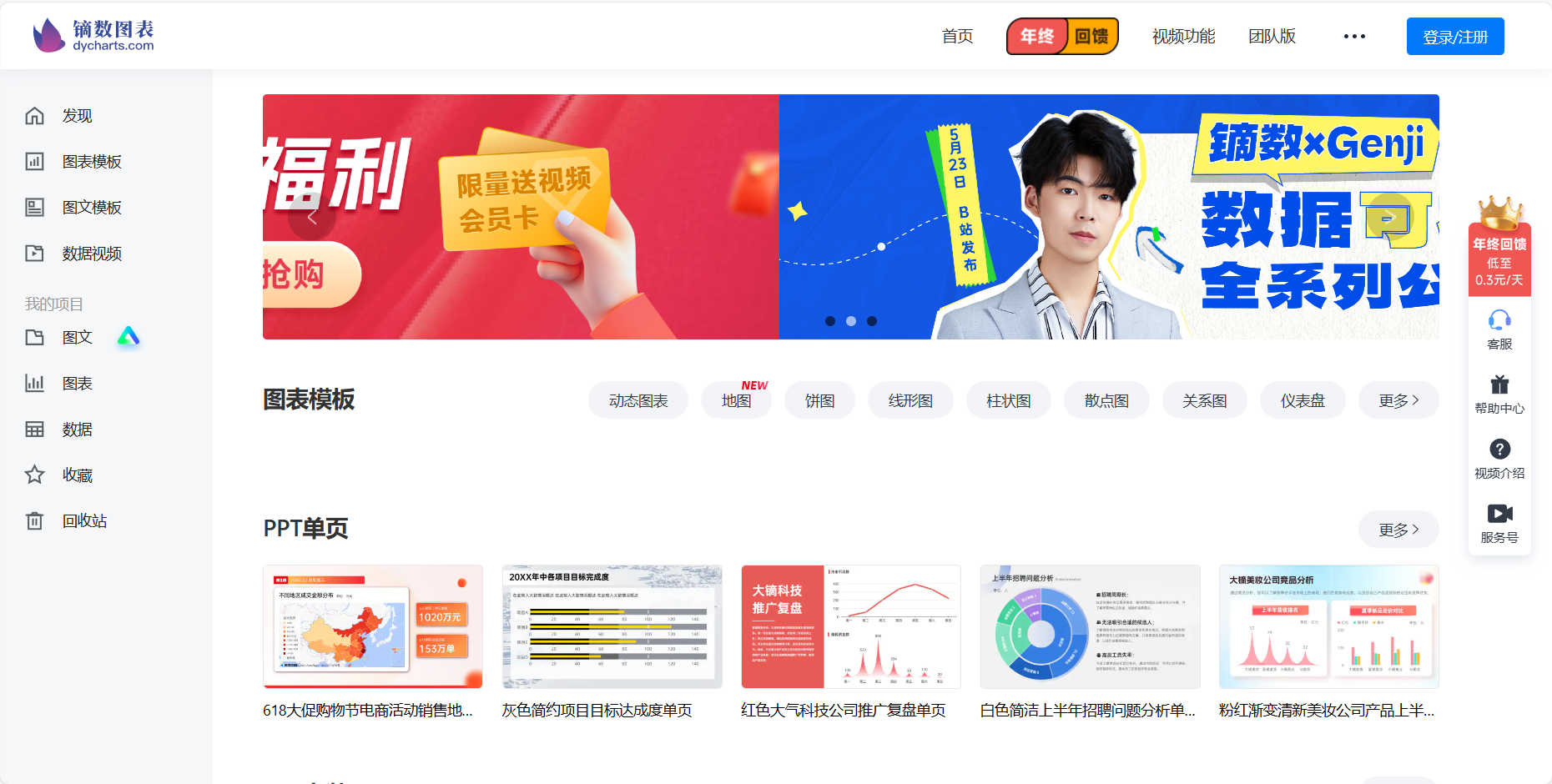 镝数图表是一个简单好用的免费在线可视化图表制作工具,它提供了丰富的图表模板和数据可视化服务。用户可以根据自己的需求选择合适的图表类型,快速制作出专业级别的图表和数据报告。