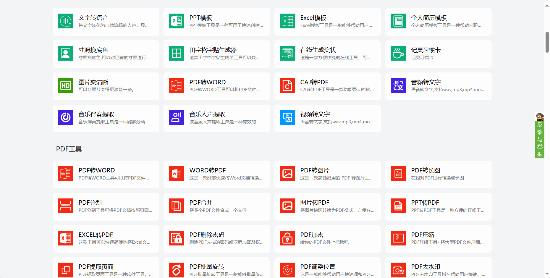 - PDF工具:提供PDF创建、编辑、合并、分割等工具。