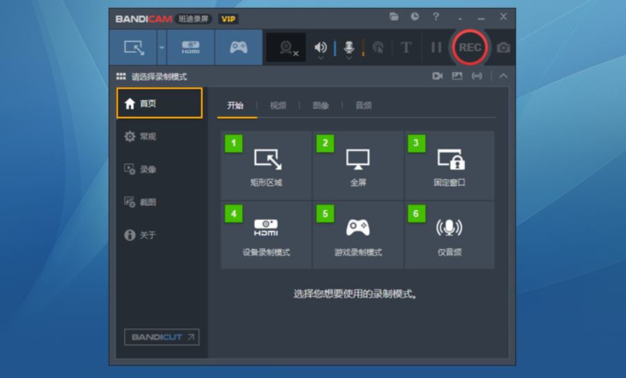 - 选择录制模式:在Bandicam主窗口选择您要使用的录制模式。