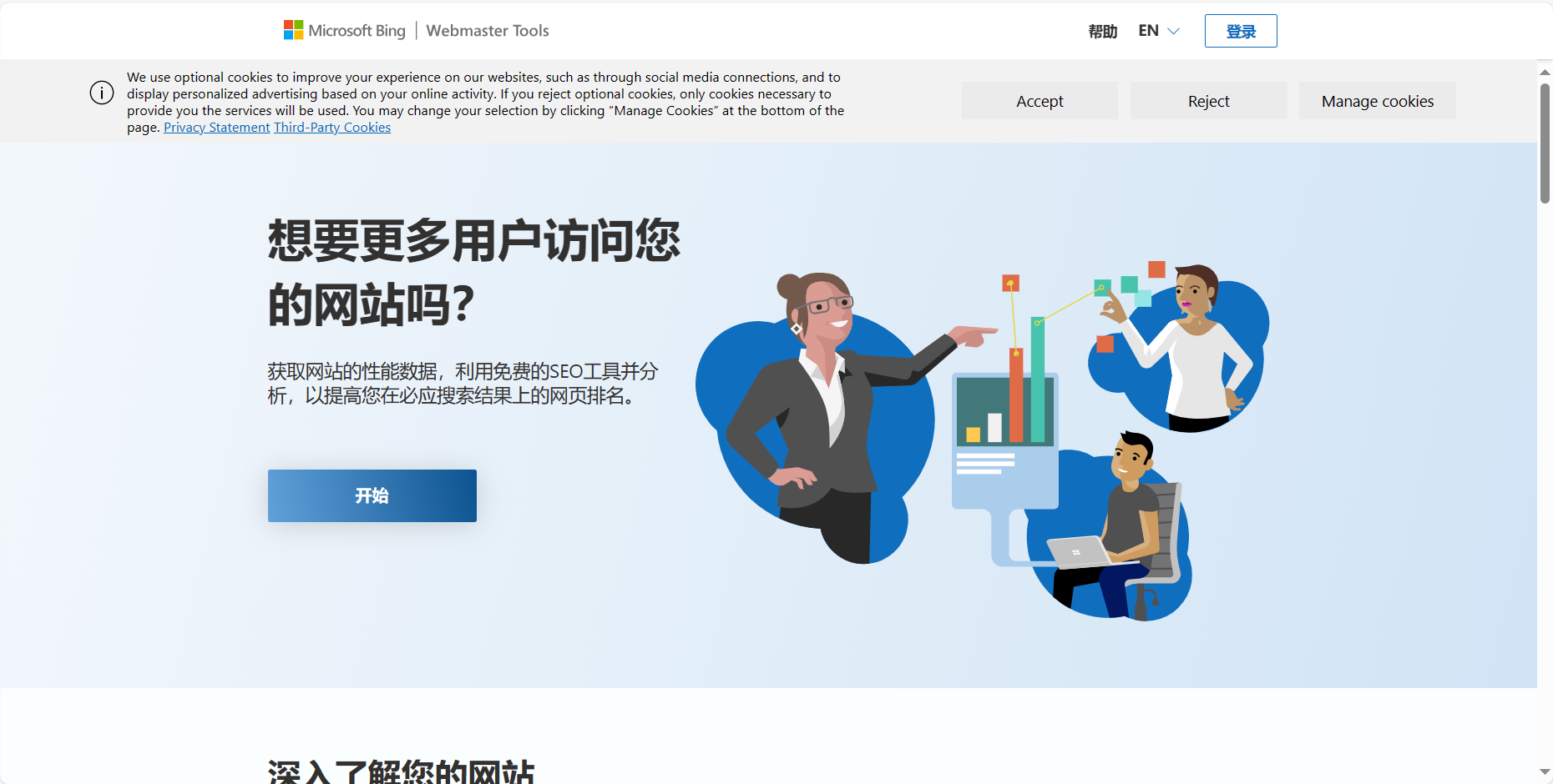 Bing站长平台是微软Bing搜索引擎为网站管理员提供的一个工具集,旨在帮助站长管理、监控和优化其网站在Bing搜索引擎中的表现。通过这个平台,站长可以提交网站到Bing爬虫,监控网站流量和搜索引擎排名,以及对网站内容进行SEO优化。