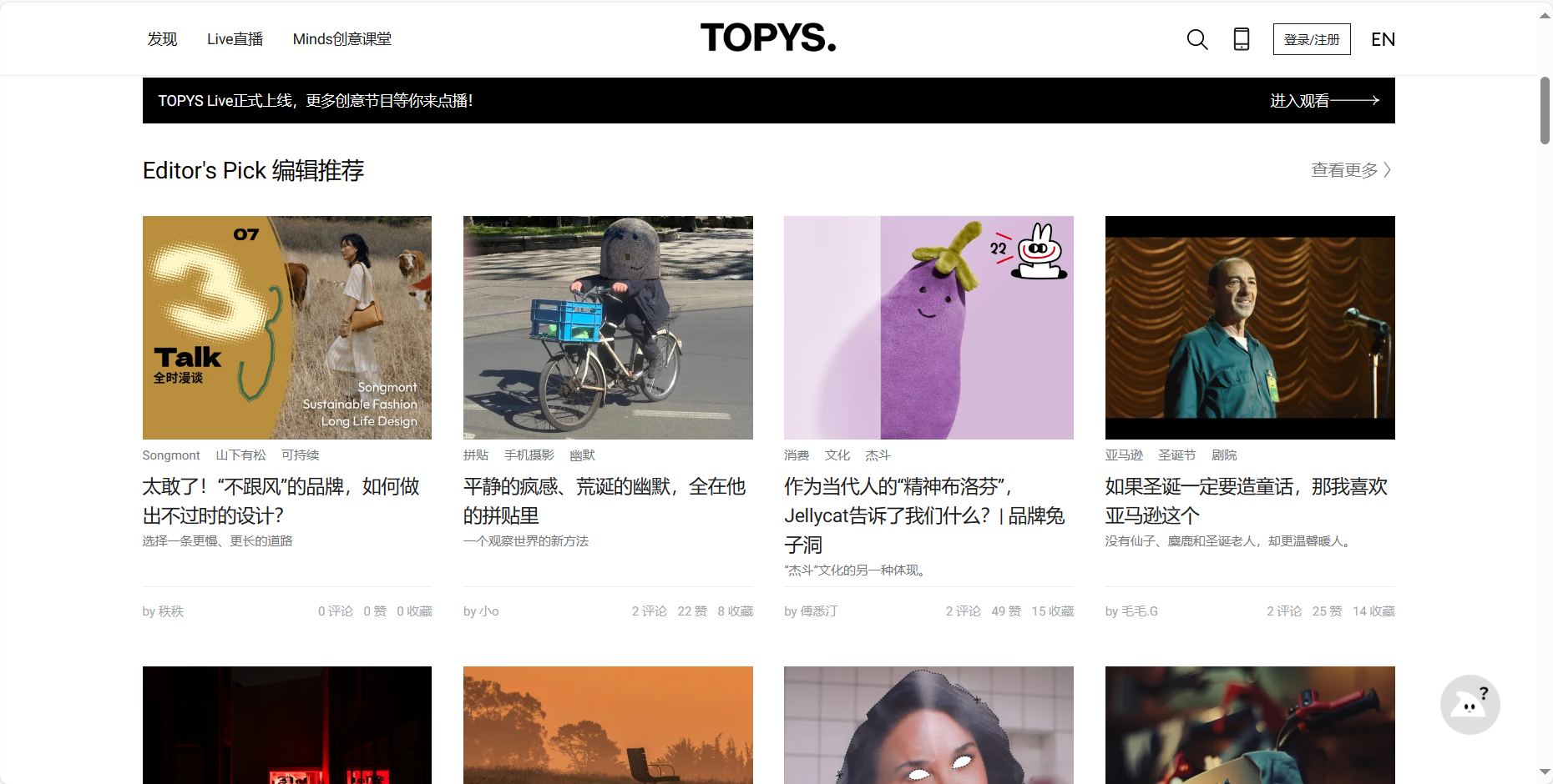 TOPYS是一个创意内容平台,旨在开阔用户的思维(OPEN YOUR MIND)。平台提供丰富的创意文章、视频和活动,涵盖设计、商业、艺术、文化和科技等多个领域。它不仅是一个创意分享的社区,也是一个灵感的源泉,鼓励人们享受并理解这个世界。